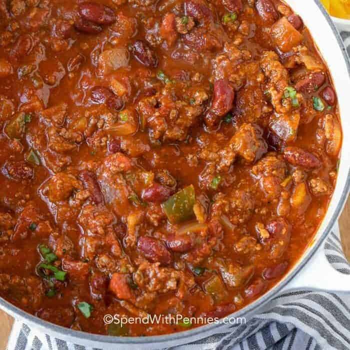 Meet your new favourite chili! This recipe lives as much as its title with 1000’s of five-star opinions. Beefy and hearty, it has heaps beans in a thick seasoned tomato sauce.