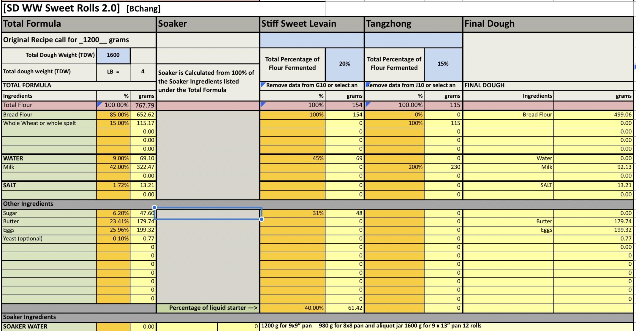 Within the bowl of a stand mixer, add the milk (think about holding again 10 g of milk and including later if that is the primary time you’re making this), egg, tangzhong, salt, sugar and levain. Combine after which break up the levain into many smaller items. Subsequent add the flours. I like to make use of my spatula to combine till there aren’t many dry areas. Permit the flour to hydrate (fermentolyse) for 20-Half-hour. Combine on low pace after which medium pace till reasonable gluten growth this will likely take 5-10 minutes. It’s possible you’ll need to scrape the perimeters of the bowl throughout the first 5 minutes of blending. Subsequent add room temperature butter one pat at a time. The dough could come aside, be affected person, proceed to combine till it comes collectively earlier than including in additional butter. As soon as all of the butter has been added and integrated enhance the pace steadily to medium. Combine at medium pace till the gluten is properly developed, roughly 10 minutes. It would be best to examine gluten growth by windowpane throughout this time and cease mixing while you get a superb windowpane. You must be capable of pull a superb windowpane, not fairly nearly as good as a white flour as a result of the bran will interrupt the windowpane considerably. Subsequent add the zest of two oranges, that means they don’t intervene with the gluten growth. Combine till they’re properly integrated within the dough.