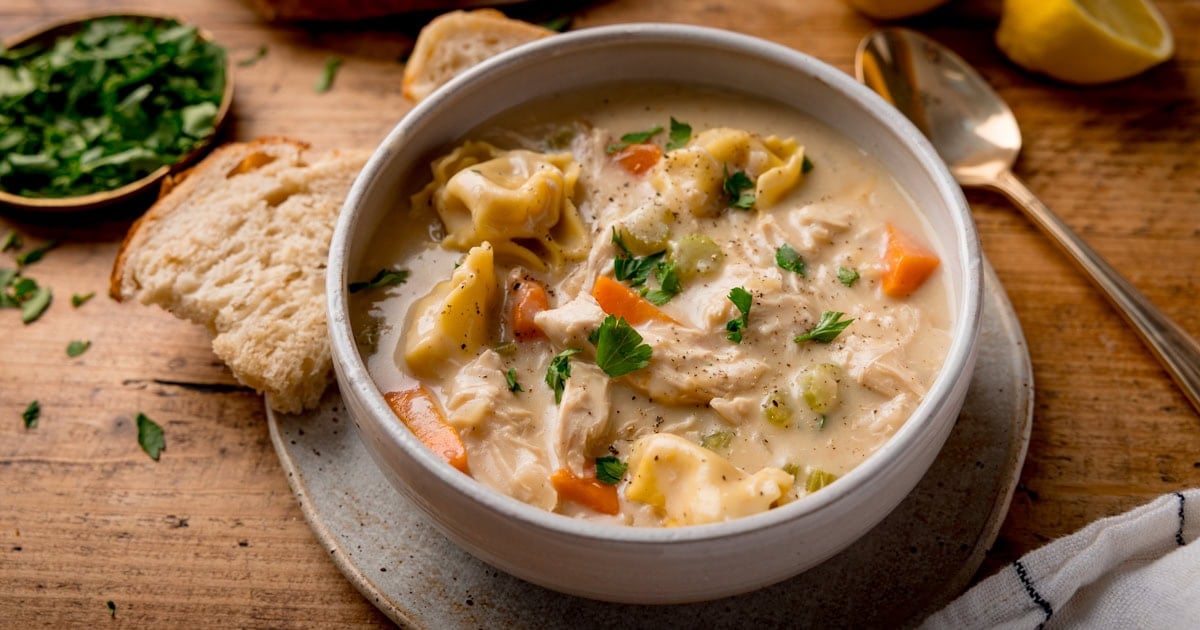 Reheat in a saucepan with the rooster and tortellini, over a medium warmth, till piping scorching all through. It’s possible you’ll want so as to add a splash extra inventory to loosen up the soup.