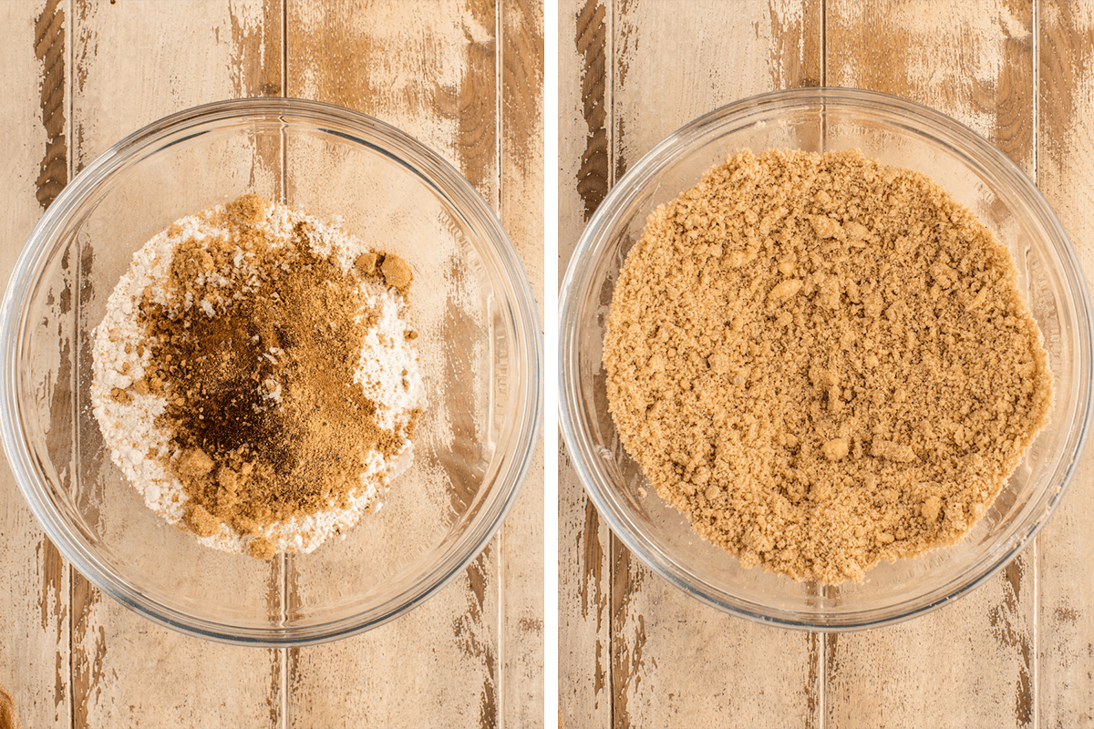 • In a medium bowl, whisk the flour, brown sugar, ginger, cinnamon, cloves, nutmeg, and salt.