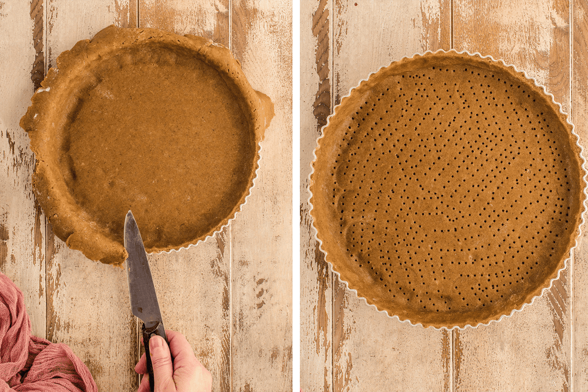 • Match the crust dough right into a 9-inch frivolously greased tart pan, trim, and dock.