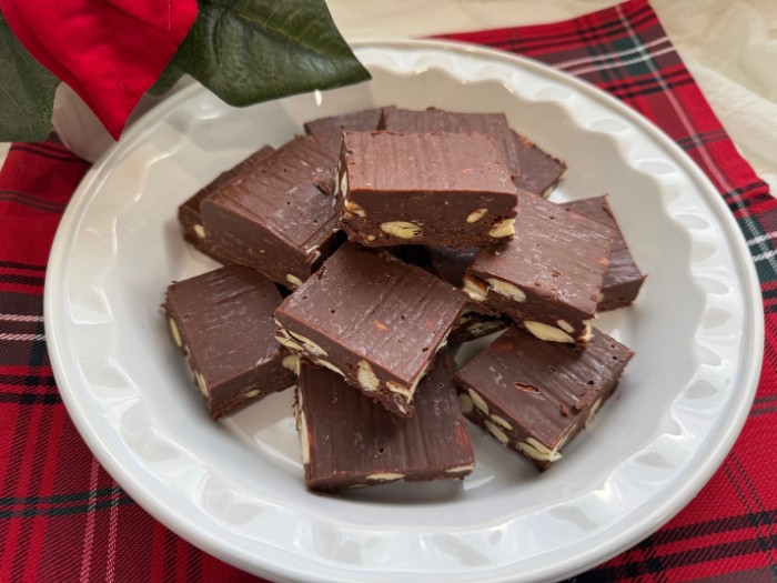 Nuts are a traditional non-compulsory addition, including texture and distinction to creamy fudge. Whether or not chopped finely or left barely chunky, nuts present a satisfying crunch that enhances the sleek chocolate base. Additionally they add a nostalgic, old school sweet store really feel. I added almonds to at present’s fudge, and they’re scrumptious.