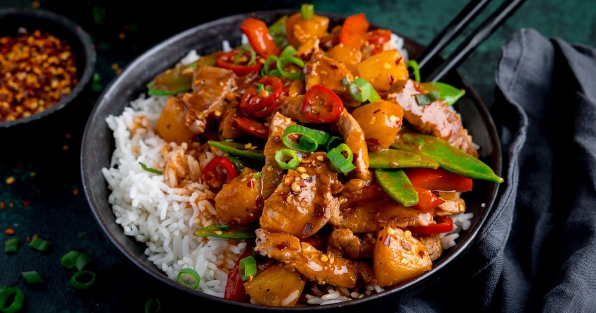 This pineapple pork stir fry is brilliant, tangy and slightly fiery. You get caramelised pineapple sweetness up entrance, then savoury soy and ginger with a clear chilli tingle on the finish.