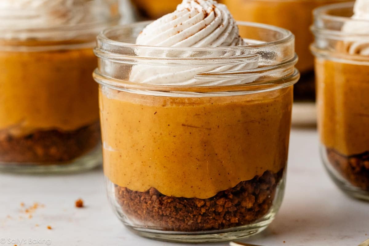 You can also make the pumpkin pies in small mason jars, stemless wine glasses, or any cute dessert coupes or parfait glasses you have got readily available. The jars we used for the pictured pumpkin parfaits every maintain a bit over 1 cup, or barely greater than 8 fl. oz., and the recipe makes sufficient for six of that measurement.