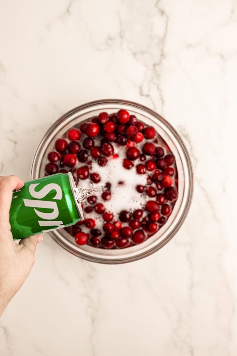 - Sprite: The soda acts as a candy, citrusy soaking liquid that flippantly infuses the cranberries with taste and helps the sugar adhere. Its sugars additionally contribute to the sticky coating that permits the powdered sugar to cling.