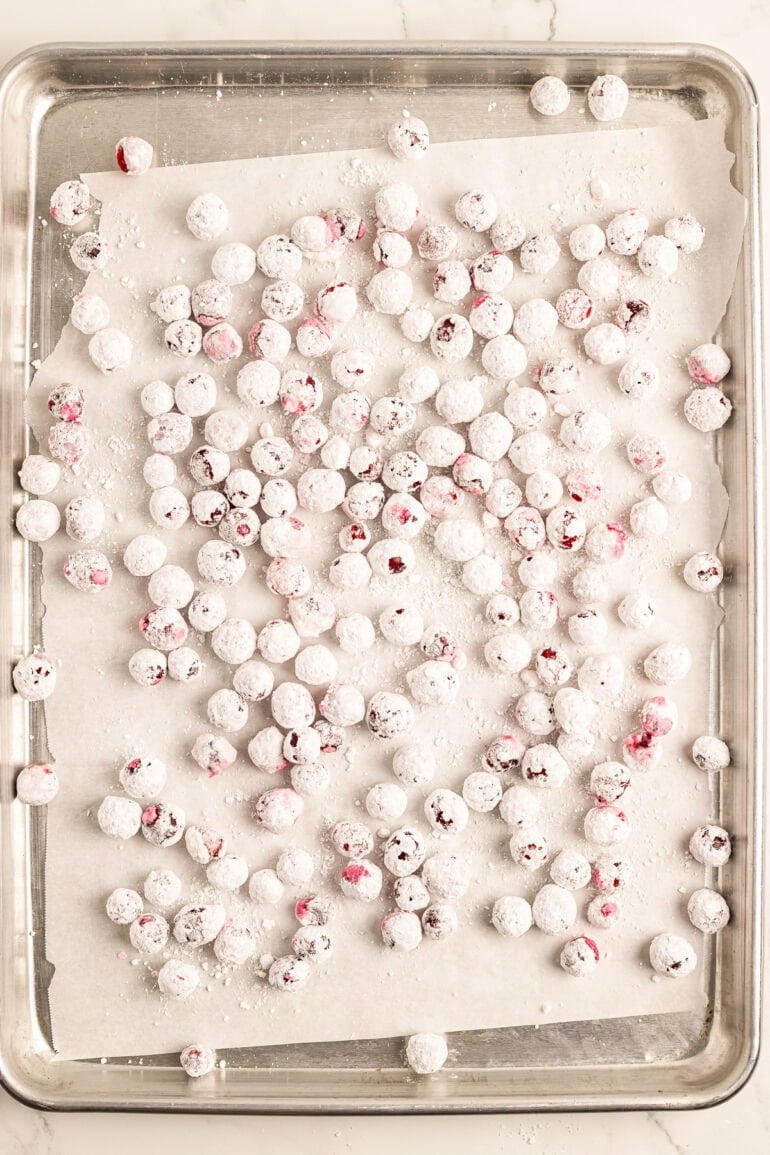 You possibly can freeze candied cranberries however they are going to turn into damp as they thaw. To assist with this, toss them in additional powdered sugar.